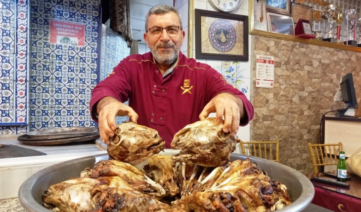 Özenle hazırlanan kuzu kellenin pişirilmesinin ardından tüketildiğini belirten Ortaabacı, “Fırında kızarttığımız kuzu kellemiz bu şekilde kelle olarak yenir. Bunun çorbası da yapılıyor, o ayrı bir lezzet, bunun müşterileri ayrı, bunun lezzeti ayrı. Bu pişirilen kelleler yarım ve tüm olarak kırılıyor. Yanında kimyon, kekik, karabiber ve pul biberle sadece fırın kebabı yer gibi dili, beyni, yanağı ve gözü olarak yenir. Bunun soğuğu söğüş olarak yapılır ama biz babam babasından, ben de babamdan bu şeklide gördüm ve üçüncü kuşak olduğum için onlarda gördüğümüz bu şekilde. Fırında pişirip su buharında servise sunuyoruz. Bu kelleyi fırınla işimizi bitirdikten sonra akşama kalan köz ile pişiriyoruz. Gece pişiriyoruz kelleleri, çünkü gündüz fırın alevli olduğu için pişmez” şeklinde konuştu.