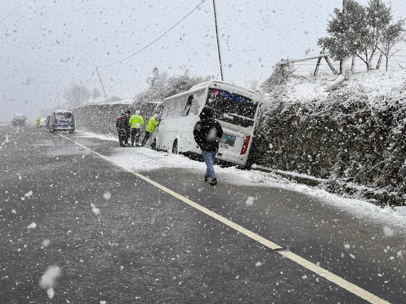 Otobüs, sağ şeritteki kanalda sürüklenerek durabildi. İhbar üzerine bölgeye polis, jandarma ve sağlık ekipleri sevk edildi. Yaralılar, sağlık görevlilerinin müdahalesi sonrası hastanede tedaviye alındı.