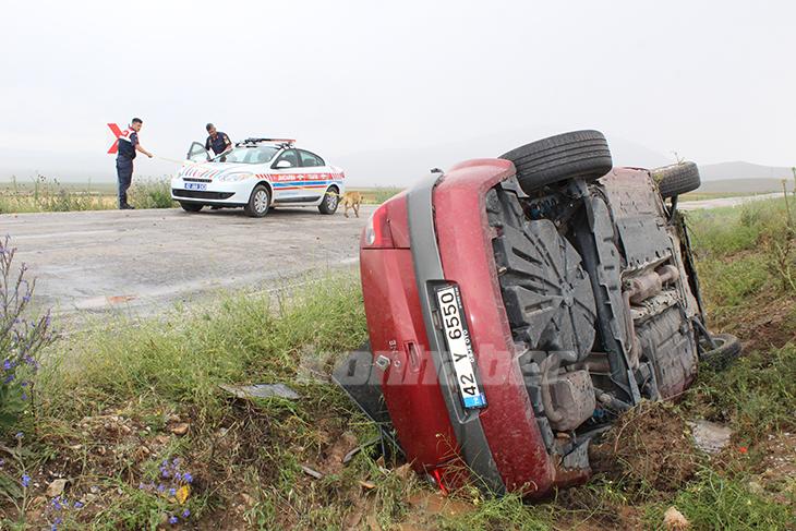 Ahmet Hüsrev Yıldız (40 ) idaresindeki 42 Y 6550 plakalı otomobil, Yunak ilçe çıkışı Yavaşlı Mahallesi yolu 4. kilometresinde sürücünün direksiyon hakimiyetini kaybetmesi nedeniyle şarampole devrildi. Kazada sürücü Ahmet Hüsrev Yıldız ile otomobilde bulunan Fatma Yıldız yaralandı. Yaralılar, Yunak Hacı İzzet Baysal Devlet Hastanesinde tedavi altına alındı.