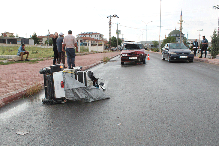 Akşehir Caddesi'nde, O.F.A. (54) idaresindeki 26 AD 563 plakalı otomobil, Osman Akkuş'un (75) kullandığı 3 tekerlekli elektrikli bisiklet ile çarpıştı.