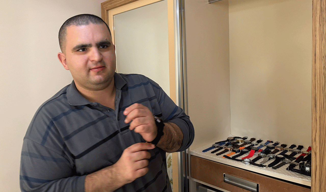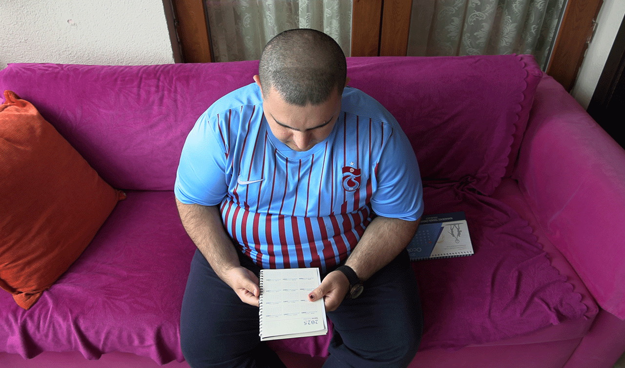 Ortahisar ilçesinde ailesiyle birlikte yaşayan, küçük yaşta hiperaktivite bozukluğu tanısı konulan, 18 yaşından sonra otizm belirtileri belirgin hale gelen özel birey Yavuz Selim Yılmaz, saat ve takvim ajandalarıyla yakından ilgileniyor.
