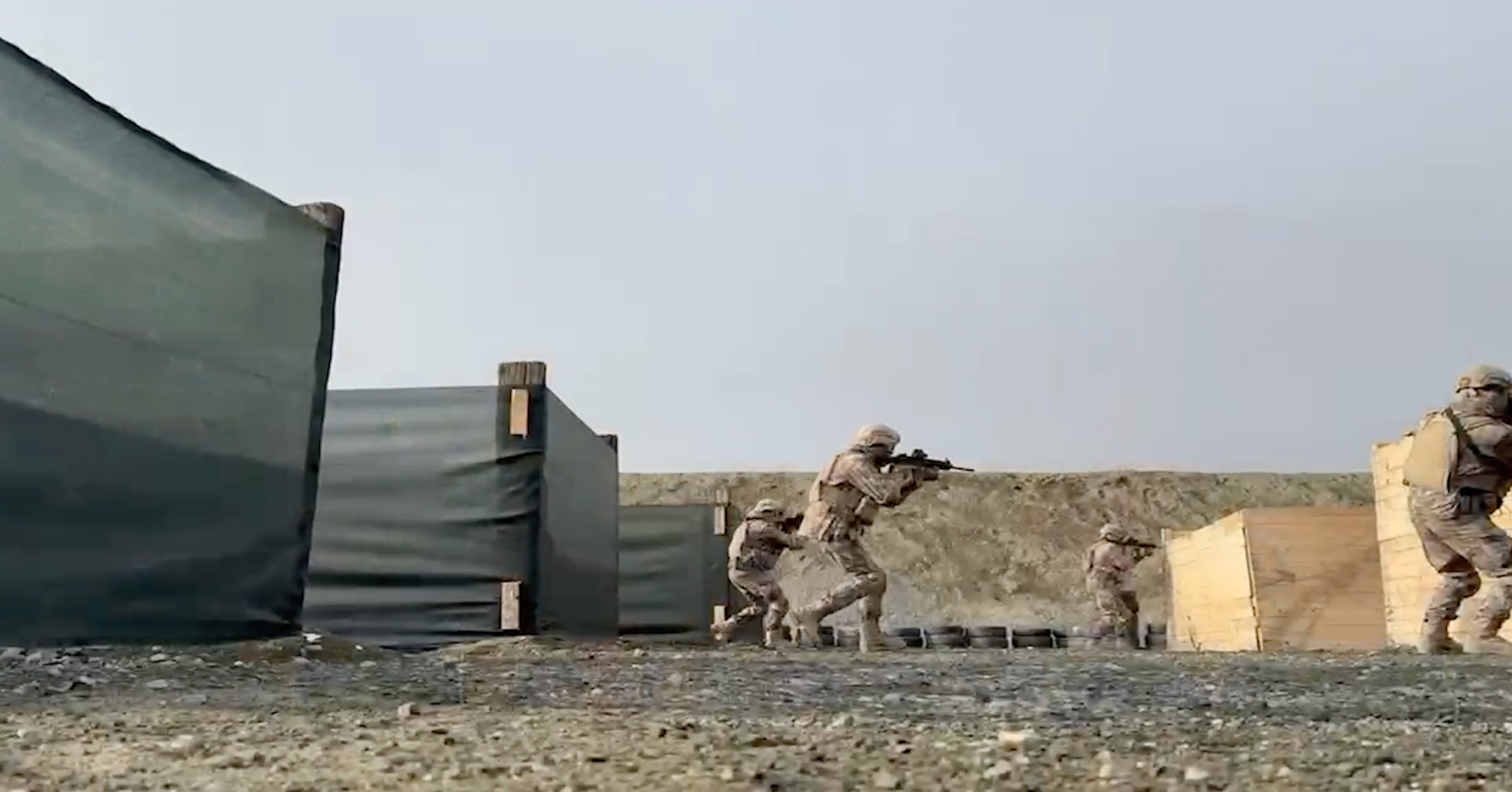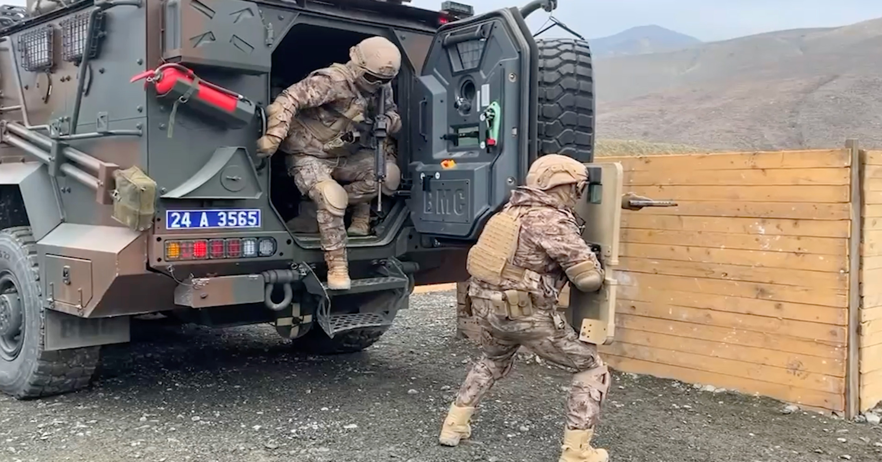 Özel Harekat polisleri tatbikatta, zırhlı araç, dron, RPG-7 roketatar, lav silahı, Ekurizi keskin nişancı tüfeği, bombaatar, araç üstü uçaksavar, makineli tüfek gibi ağır ve hafif destek silahları kullandı.