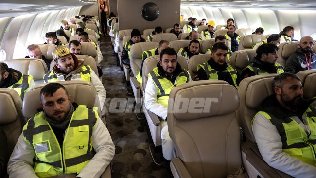 "TUR" ile Adana Havalimanına gelen madenciler, malzemelerini aldıktan sonra deprem bölgelerine gitmek ve arama kurtarma çalışmalarına katılmak üzere yola çıktı.