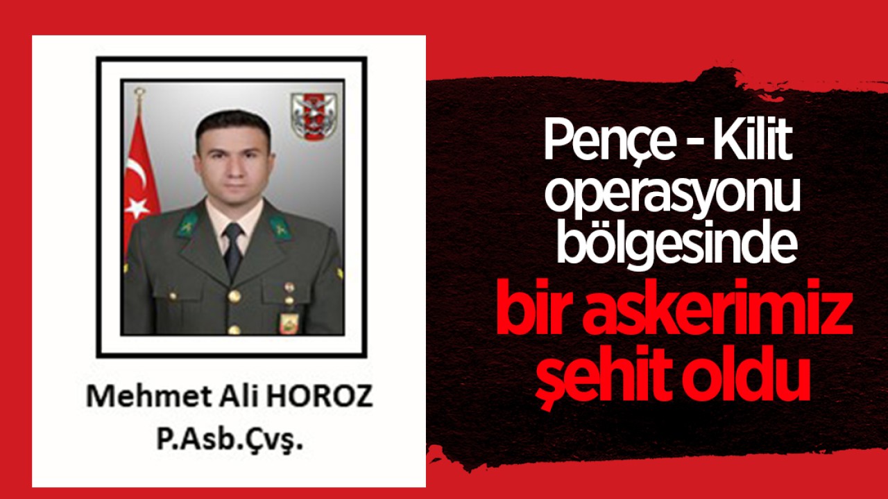 Milli Savunma Bakanlığı'ndan yapılan açıklamada, Pençe-Kilit operasyonu bölgesinde gerçekleştirilen arama tarama faaliyeti sırasında bölücü terör örgütü mensuplarıyla temas sağlandığı, Piyade Astsubay Çavuş Mehmet Ali Horoz'un şehit olduğu belirtildi.