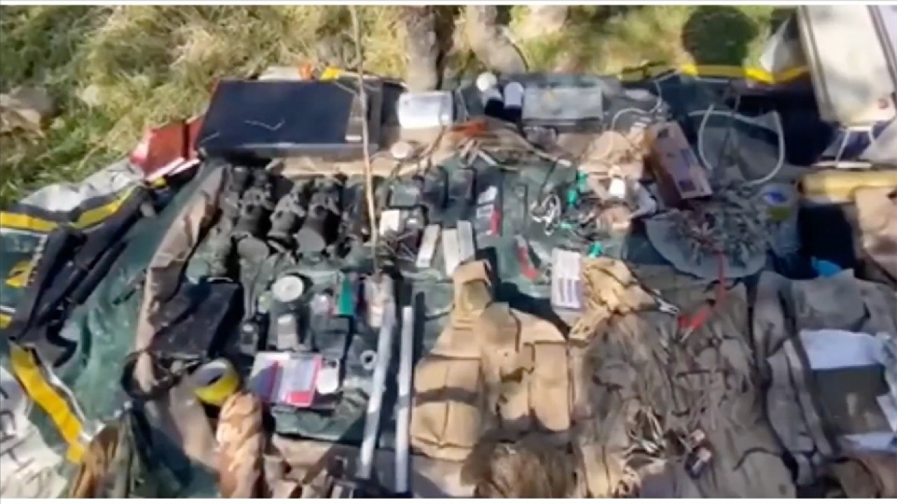 Aramalarda, av tüfeği, taarruz tipi el bombası, dolu AK-47 şarjörü, 5 gece görüş cihazı, 2 telsiz, 1 sabit merkez telsizi, 3 termal şemsiye, 4 kalıp nitro-gliserin, 10 kilogram amonyum nitrat, 5 elektrikli fünye, 6 alpha-fire alıcı, 3 alpha-fire kumanda, şişme bot, kürek ve pompası, cep telefonu, 2 dijital fotoğraf makinesi, 5 metre infilaklı fitil, kol saatine tuzaklanmış zaman ayarlı EYP düzeneği, 10 mazot sobası, 3 kamera, telsiz rölesi, solar paneli, 2 jeneratör ve muhtelif yaşam malzemesi ile örgütsel doküman bulundu.