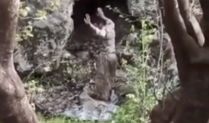 Irak'ın kuzeyinde devam eden Pençe-Kilit Operasyonu'nda Zap Vadisi'nde sıkıştırılan teröristlerin mağaranın önünde gözaltına alınma anlarının kaydı paylaşıldı.