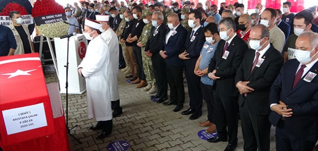 Cenaze namazının kılınmasının ardından askeri manga tarafından omuzlara alınan şehidin Türk bayrağına sarılı tabutu tekbirler eşliğinde cenaze aracına götürüldü.
