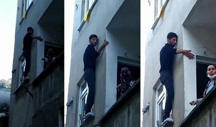 İstanbul Sultangazi'de, hırsızlık amacıyla girdiği evde fark edilen şahıs, balkondan kaçmaya çalışırken mahsur kaldı. Binanın dış cephesinde mahsur kalan hırsız, ev sahibi ve sokaktakilere kurtarılmak için adeta yalvardı.