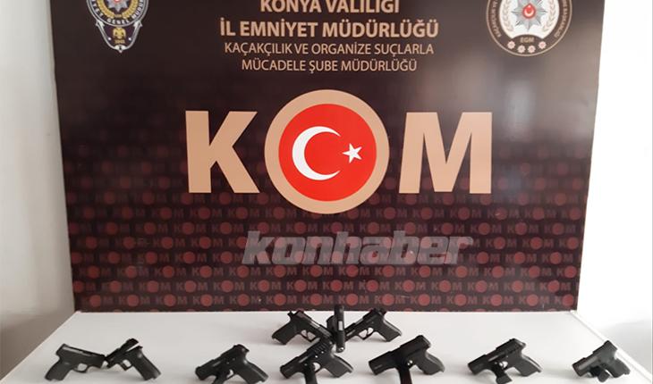 Konya polisi, şüphelendiği bir otomobile hur ihtarında bulundu. Polis ekiplerinden kaçmaya başlayan otomobil kovalamaca sonucu yakalandı. Yapılan aramada otomobilin bagaj kısmına gizlenmiş 10 adet ruhsatsız tabanca ele geçirildi. Silah sevkiyatını yapan 2 kişi ise tutuklandı.