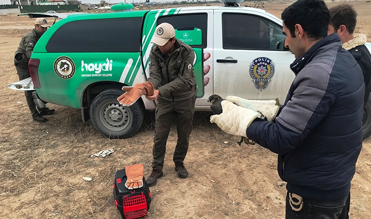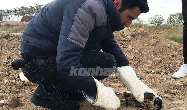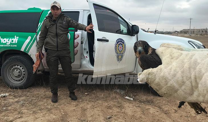 Konya’da devriye atan polis ekipleri tarafından boş arazide ayakları bağlı halde bulunan doğan, Çevre Doğa ve Hayvanları Koruma Büro Amirliği ekipleri tarafından Karatay Hayvanat Bahçesi Veteriner Hekimliğine teslim edilerek tedavi altına alındı.