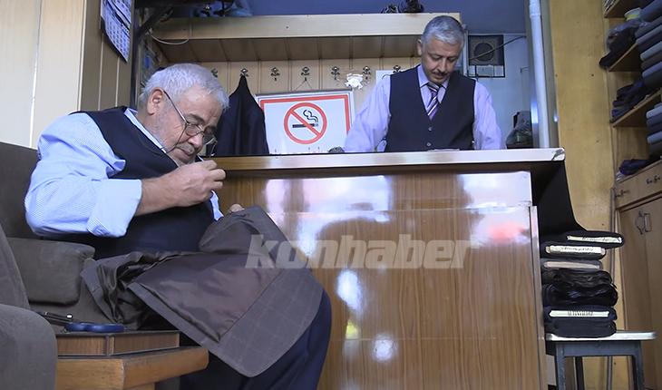 Konya’da yarım asrı aşkın süredir terzilik yapan 73 yaşındaki Zeki Çatlı, 17 metrekarelik dükkânında oğluyla birlikte mesleğini ilk günkü heyecanla sürdürüyor.