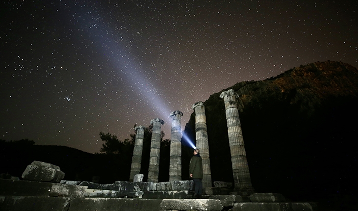 Aydın'ın Söke ilçesindeki Priene Antik Kenti, geceleri fotoğrafçıları ağırlıyor.
