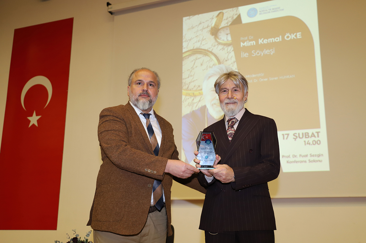 Siyaset bilimi profesörü, tarihçi, roman ve senaryo yazarı Prof. Dr. Mim Kemal Öke, Necmettin Erbakan Üniversitesi Sosyal ve Beşeri Bilimler Fakültesi’nin düzenlediği söyleşide, kişisel geçmişi, akademik yolculuğu ve sanata bakışını öğrencilerle paylaştı.