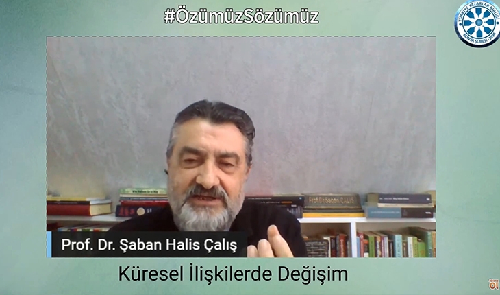 Prof. Dr. Şaban Halis Çalış: "Küresel Sistemde yaşanan değişim üzerinde konuşulması gereken bir yığın mesele var. Şu anda Uluslararası sistemden küresel sisteme geçişin yaşandığı bir dönemde olduğumuzu düşünüyorum. Uluslararası sistem ve küresel sistem, tarihsel açıdan baktığımızda sistemin, olguların, sistemin kendisini oluşturan yapılar, aktörler, ülkeler ve diğer unsurları dikkate aldığımızda otuz yıl savaşlarından sonra başlayan, bir anlamda da ikinci dünya savaşından sonra da gittikçe hızlanan günümüze yaklaştıkça ivmesi artan bir değişim içerisinde olduğunu görüyoruz.