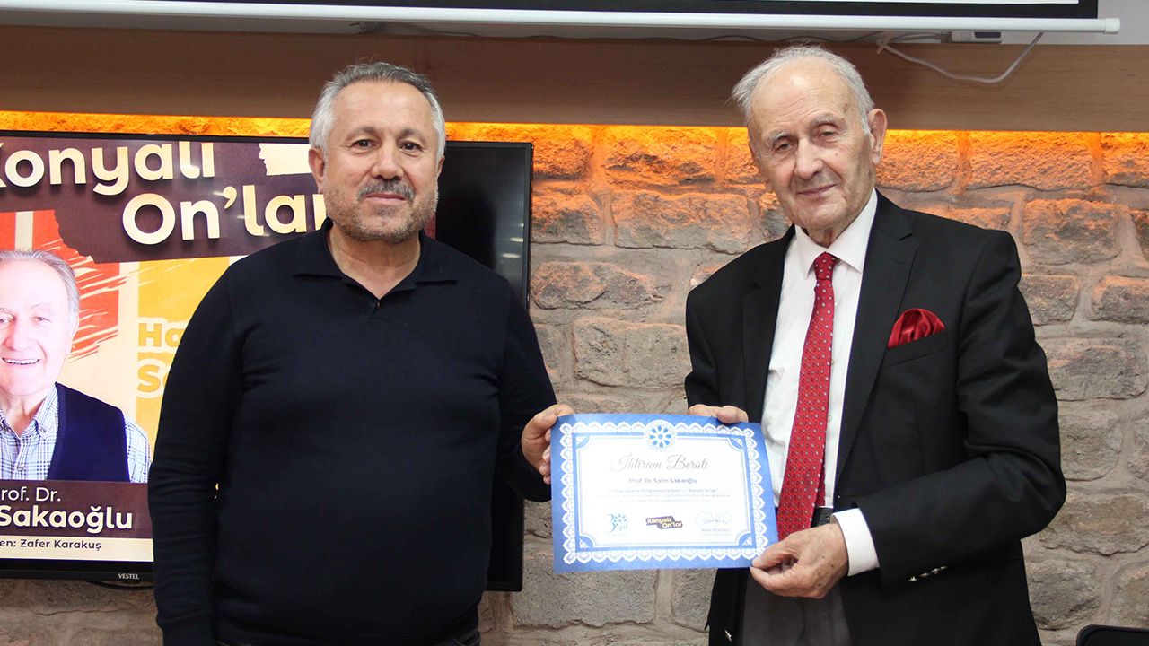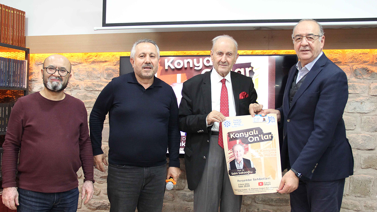Türkiye Yazarlar Birliği Konya Şubesi D. Mehmet Doğan Kütüphanesi'nde her on beş günde bir gerçekleştirilen "Konyalı On'lar" isimli Perşembe sohbetleri programında, hocaların hocası Prof. Dr. Saim Sakaoğlu, geçmişe dair anılarını ve Konya’nın kültürel yaşamına dair izlenimlerini katılımcılarla paylaştı.
