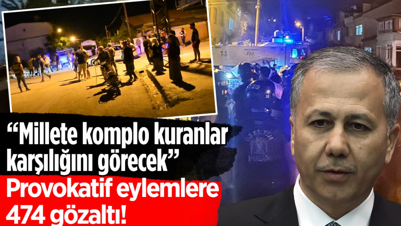 Vatandaşlara seslenen Yerlikaya, "Provokasyonlara gelmeyelim. İtidalli davranalım. Hukuk dışı yollarla, insanlara, çevreye ve mallara zarar vererek suç işlemeyelim. Devletimiz güçlüdür. Devletimize ve Milletimize karşı bu komploları kuranlar hak ettikleri karşılığı göreceklerdir." dedi.