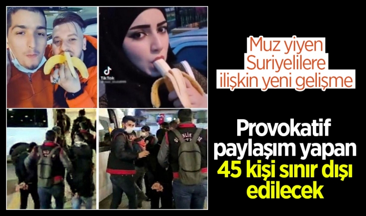 Sosyal medyada provokatif 'muz görüntüsü' paylaşımı yapan 45 yabancı uyruklu, adli işlemlerin ardından sınır dışı edilmek üzere Geri Gönderme Merkezlerine sevk edilecek.