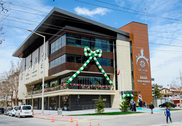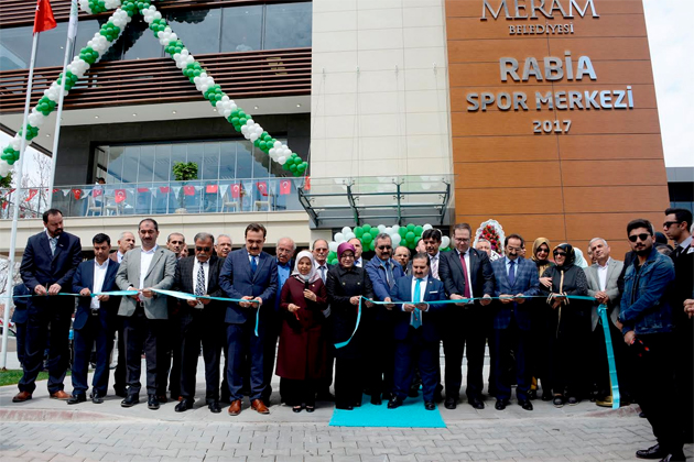 Konuşmalardan sonra protokol mensupları dualar eşliğinde Rabia Spor Merkezi’nin açılış kurdelesini kesti.