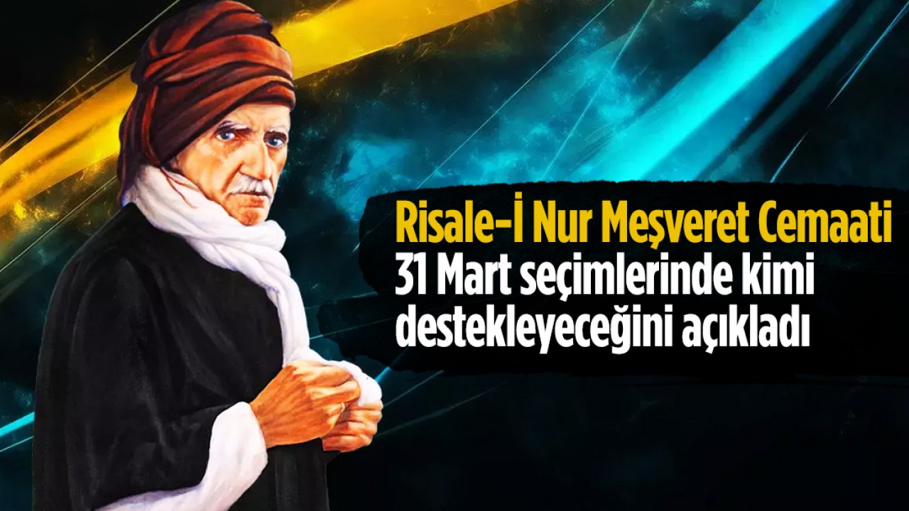31 Mart seçimlerinde kimi destekleyeceklerini açıklayan Risale-İ Nur Meşveret Cemaati'nden yapılan açıklamada şu ifadelere yer verildi. "2023 Cumhurbaşkanlığı seçimlerinin sadece siyasi bir tercih meselesi değil, devletimizin bekası, milletimizin ve Alemi İslam'ın selametiyle doğrudan ilgi olduğunu Türk Kamuoyuna duyuran cemaatimiz, memleketimizin maddeden manen telakki ve tealisi için azim ve gayretle çalıştığına şahit olduğumuz Cumhurbaşkanımız Sayın Recep Tayyip Erdoğan'ı ve onun bu ulvi idealine gönül veren çalışma arkadaşlarını, senelerdir büyük bir titizlikle inşasına ve imarına sa'y-ü gayret ettikleri ve her birini belli seviyelere getirdikleri vatan, millet ve İslamiyet lehinde ki hayırlı işlerini tamamlayıp küllileştirmeleri için desteklemiştir ve halen muvaffakıyetlerine dua etmeye devam etmektedir. 31 Mart 2024 mahalli seçimlerinde de beyan edilen saiklerde Cumhurbaşkanımız Sayın Recep Tayyip Erdoğan'ın tensip ettikleri adayları desteklediğimizi aziz milletimizin nazar-ı dikkatine arz ediyoruz"