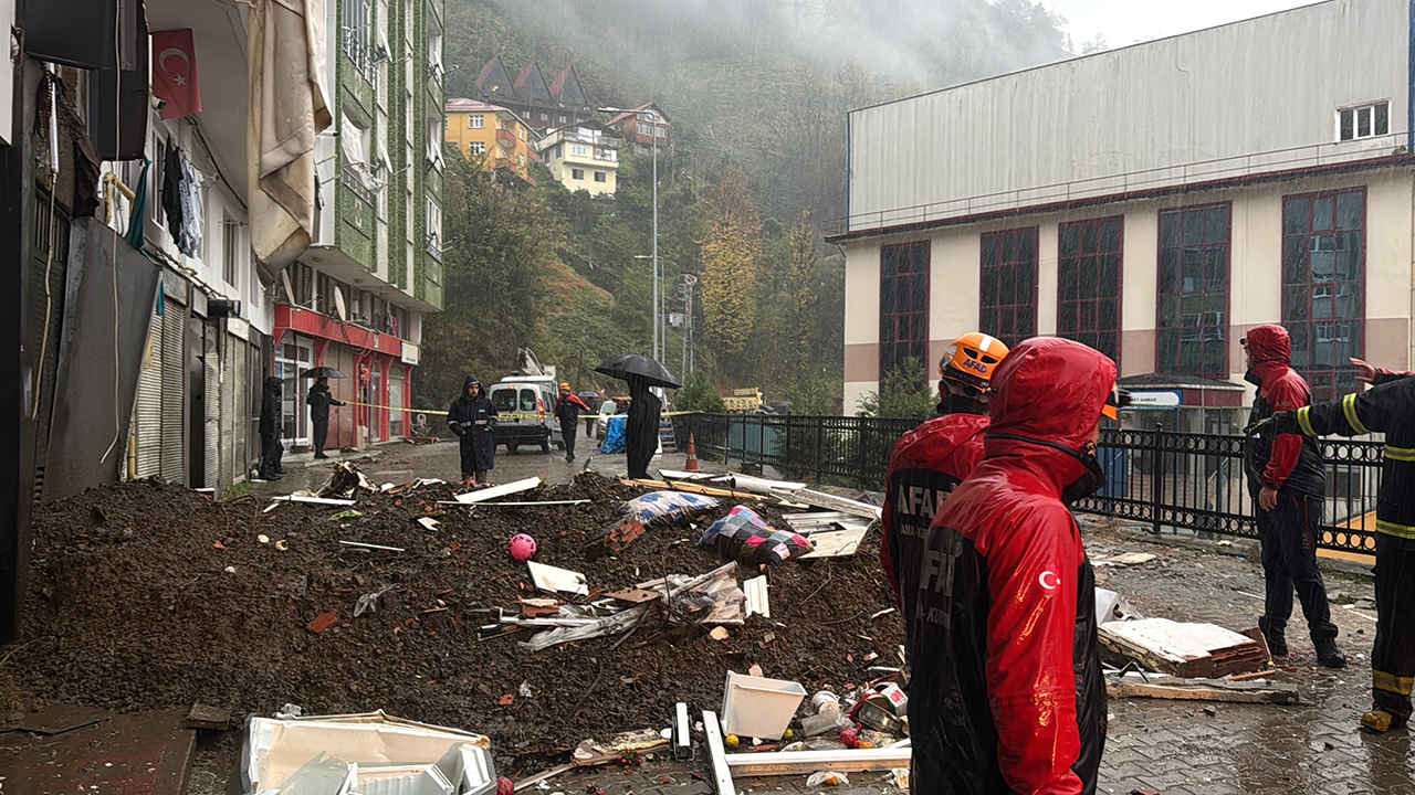 Rize'nin Çayeli ilçesinde sabaha karşı meydana gelen heyelanda 1 kişi öldü, 4 kişi yaralandı. Heyelanda zarar gören binada oturan vatandaşlar ise İtfaiye ekipleri tarafından tahliye ediliyor.