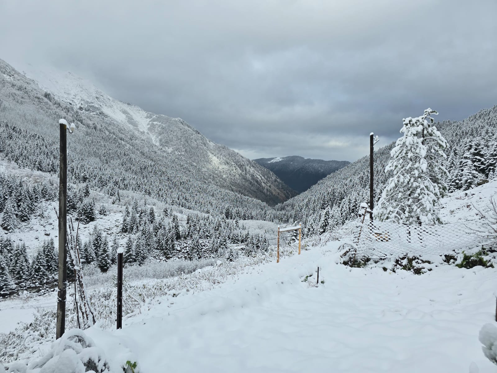 Yer yer 5 ile 20 santimetreye ulaşan kar kalınlığı, yeşil alanları beyaz örtülü ile kapladı. Kar yağışı bölgede güzel görüntüler oluştururken, o anlar cep telefonu kamerasıyla kaydedildi.