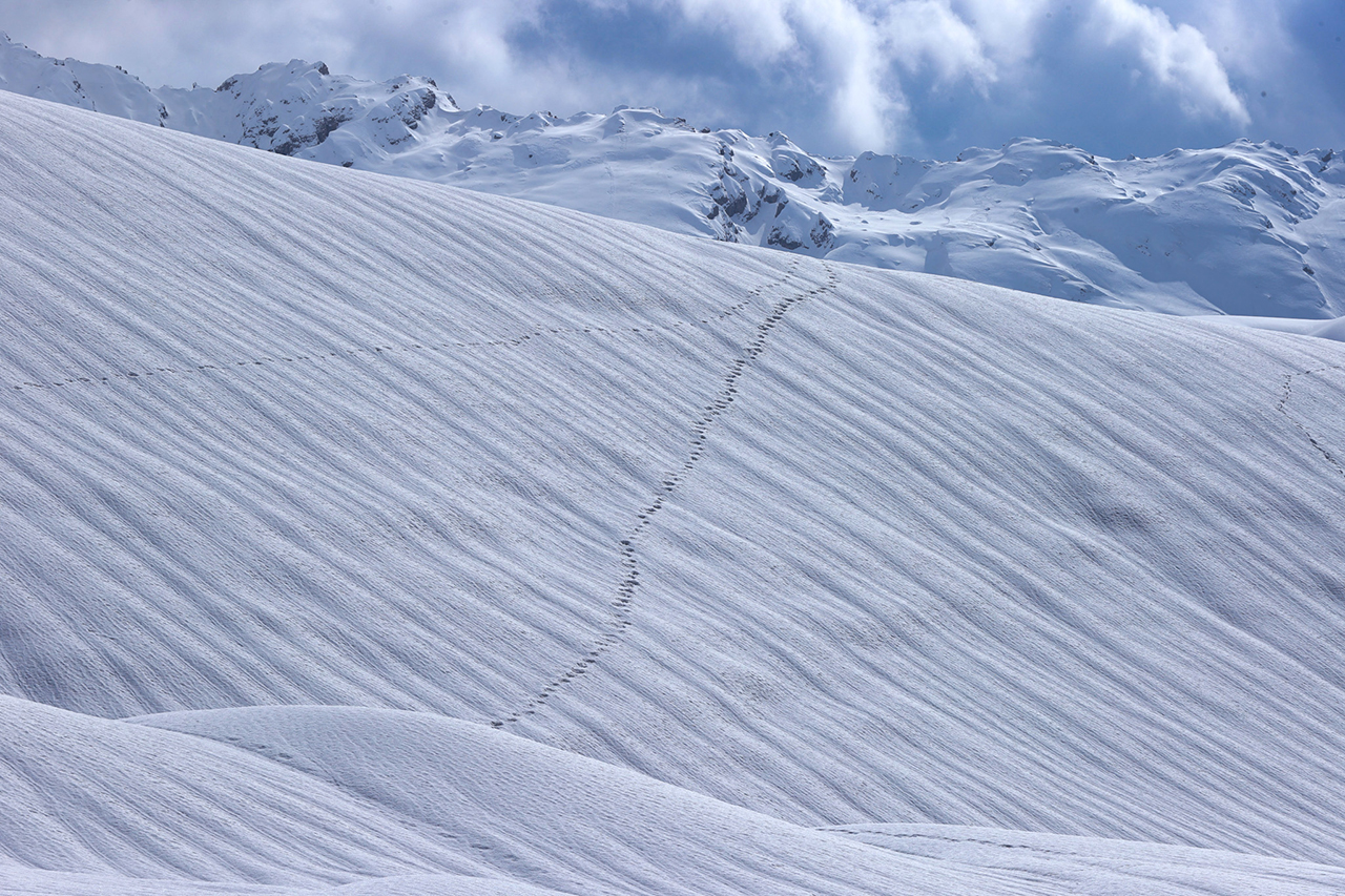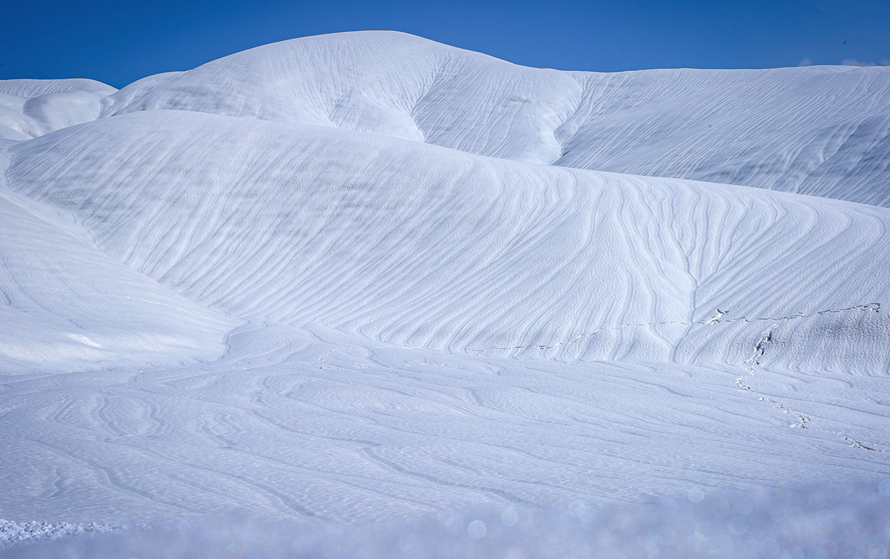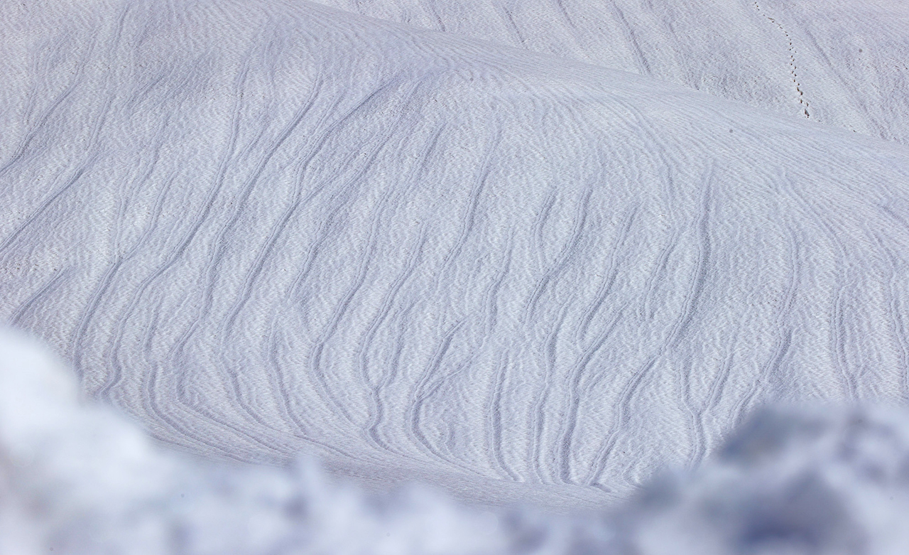 Hakkari'de son günlerde etkili olan şiddetli rüzgarın etkisiyle yüksek kesimlerde karın yüzeyinde oluşan dalga şeklindeki desenler doğaseverleri şaşırtıyor.