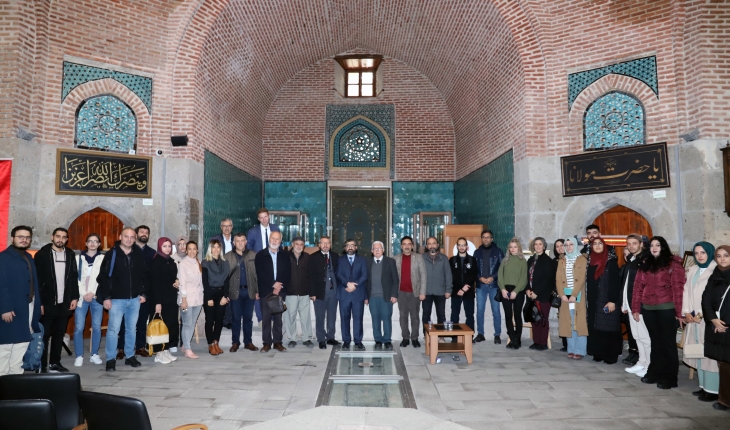Sadreddin Konevi’nin babasının sultanların hocası olduğunu ve Konevi’nin de sarayda yetişmiş dönemin meşhur kişilerinden biri olduğunu söyleyen Yaşar, “Yaşadığı dönemde melikler gibi yaşamış Konevi ancak vefat edince bilinirliği azalmış. Sadreddin Konevi’nin manzumesine çok gelip gidenler olmuş, gelip de ayrılamayanlar olmuş. Mesela, gelip buradan ayrılamayanlardan birisi de Abdullah Bosnevi. O kadar etkilenmiş ki o mekandan ve havadan, gidememiş. Burada vefat etmiş, türbesi de Sadreddin Konevi Türbesi’nin hemen karşısında… Şeyh Mustafa Manevi de bu manevi ortamdan etkilenerek bir şiir yazmış” diye konuştu.