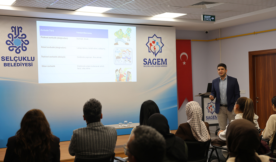 Selçuklu Aile Gelişim Merkezi (SAGEM) tarafından ailelerin günlük hayatta sıklıkla karşılaştığı sorunlardan biri olan “Akran Zorbalığı ile Mücadele” konusu ele alındı.