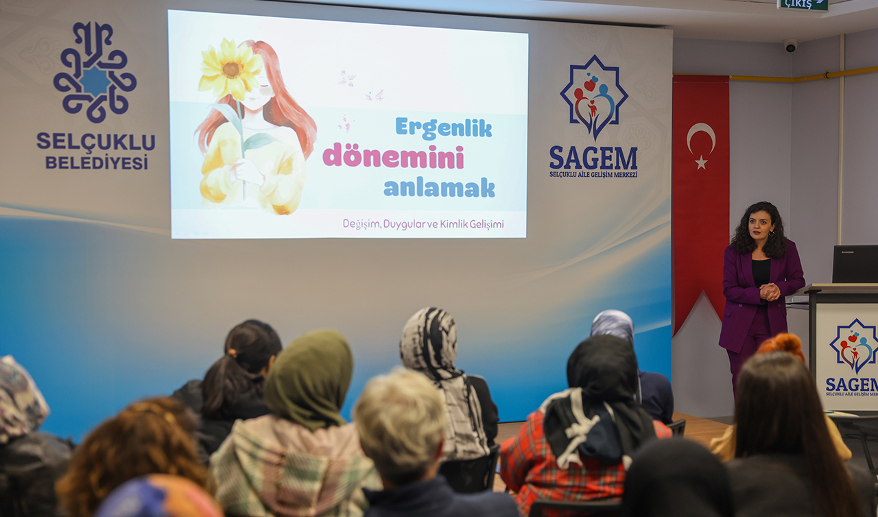 Selçuklu Belediyesi tarafından ilçeye kazandırılan ve açıldığı günden bu yana önemli çalışmalara imza atan SAGEM, aile içi ilişkileri desteklemek ve sağlıklı, bilinçli, mutlu ve huzurlu bir aile kurumunun oluşmasını sağlamak amacıyla eğitim seminerleri düzenlemeye devam ediyor. Bu çerçevede çocukların ergenlik dönemini daha bilinçli ve doğru yönetebilmek amacıyla “Ergenlik Dönemini Anlamak” konulu seminer düzenledi.
