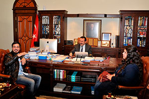 Gökbel, ziyarette, programı keyifle izlediklerini belirterek, "Gerçekten baştan sona tüm performansınız harikaydı. Bu başarınız hem üniversitemizin tanıtımı açısından hem de sizin geleceğiniz açısından oldukça önemli. Performansınızı gördükten sonra finale emin adımlarla gideceğinize inanıyorum. Sizlerle iftihar ediyorum" dedi.