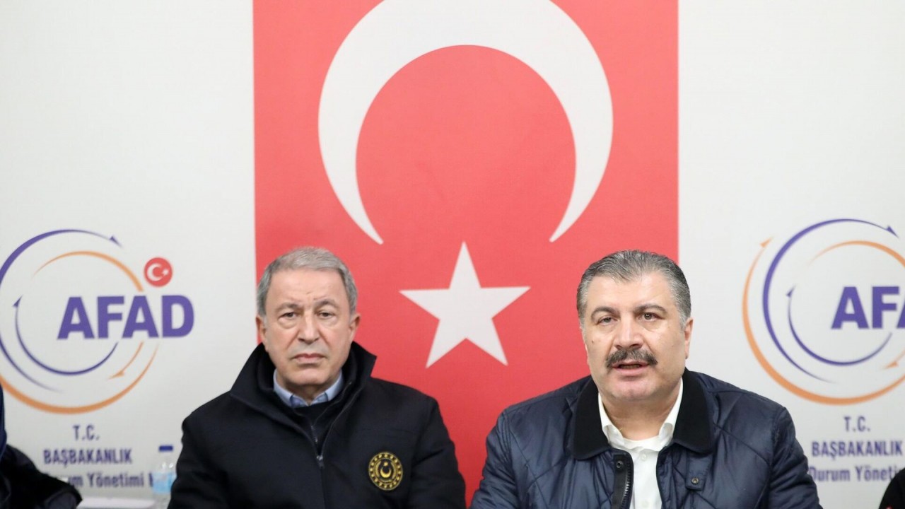 Bakan Koca, Milli Savunma Bakanı Hulusi Akar ile merkez üssü Kahramanmaraş'ın Pazarcık ve Elbistan ilçeleri olan ve 10 ili etkileyen depremlerin ardından arama kurtarma çalışmalarının sürdüğü Hatay'daki Acil Durum Koordinasyon Merkezi'nde açıklamalarda bulundu.