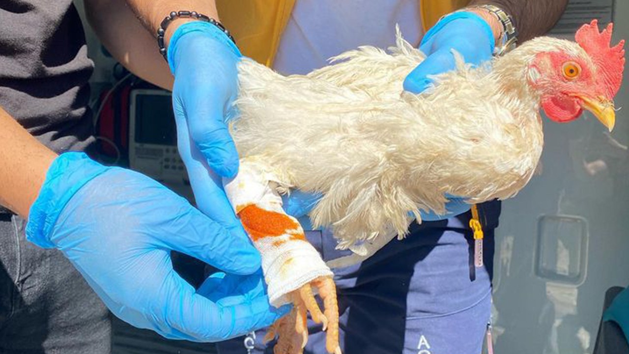 Tavuğu ambulansa alan ekipler, yarasını temizleyip sargı bezi ile sardı ve serbest bıraktı. Sağlık ekiplerinin tavuğu tedavi ettiği anlar, cep telefonu kamerasıyla kaydedildi.