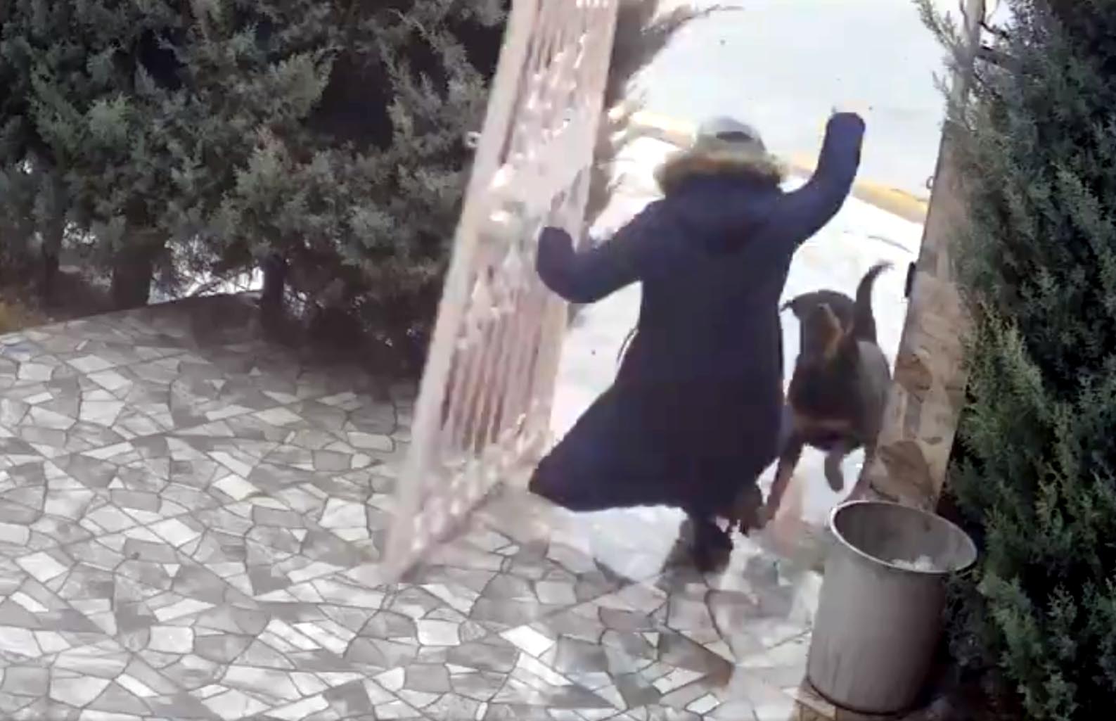 Olay, Emadağ'da 12 Ocak'ta meydana geldi. Evine doğru yürüyen kadına sokak köpekleri saldırdı. Güvenlik kamerasına yansıyan olayda kadın, havlayarak üzerine gelen köpekleri ayaklarıyla uzaklaştırmaya çalıştı. Çığlık seslerini duyan komşusu, evinin bahçe kapısını kumanda ile açarak, kadının içeriye girmesini sağladı. Daha sonra da kapıyı kapatarak köpekleri uzaklaştırdı. Vücudunda küçük ısırık yaraları oluşan kadın, hastanedeki tedavisinin ardından taburcu edildi.