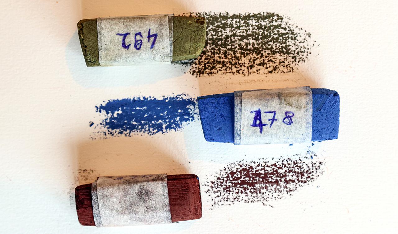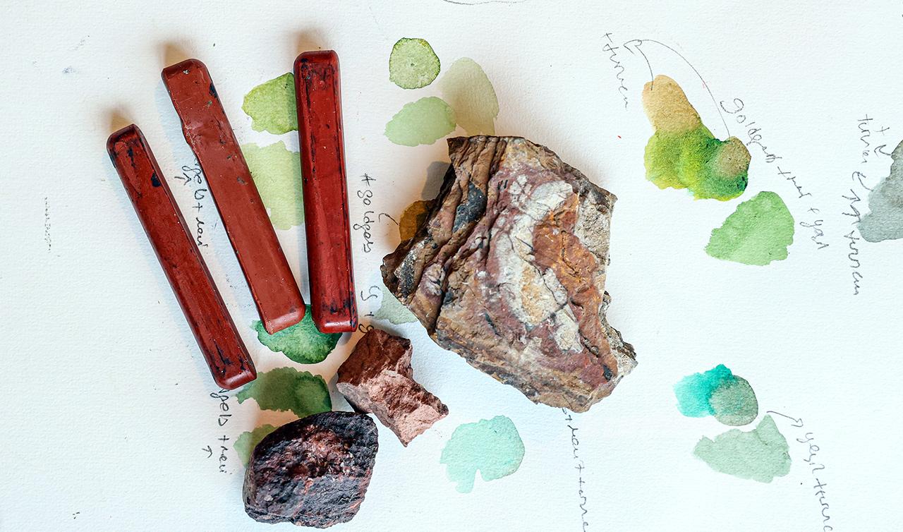 Doğadan elde edilebilecek iki çeşit pigment olduğuna; bunlardan birinin taşlardan elde edilen mineral pigmentler, diğerinin ise bitkilerden elde edilen organik pigmentler olduğuna değinen Tanrıseven, kullandığı mineral pigmentleri yani doğal taşları Kırklareli'ndeki Demirköy'den toplayıp getirdiğini anlattı.