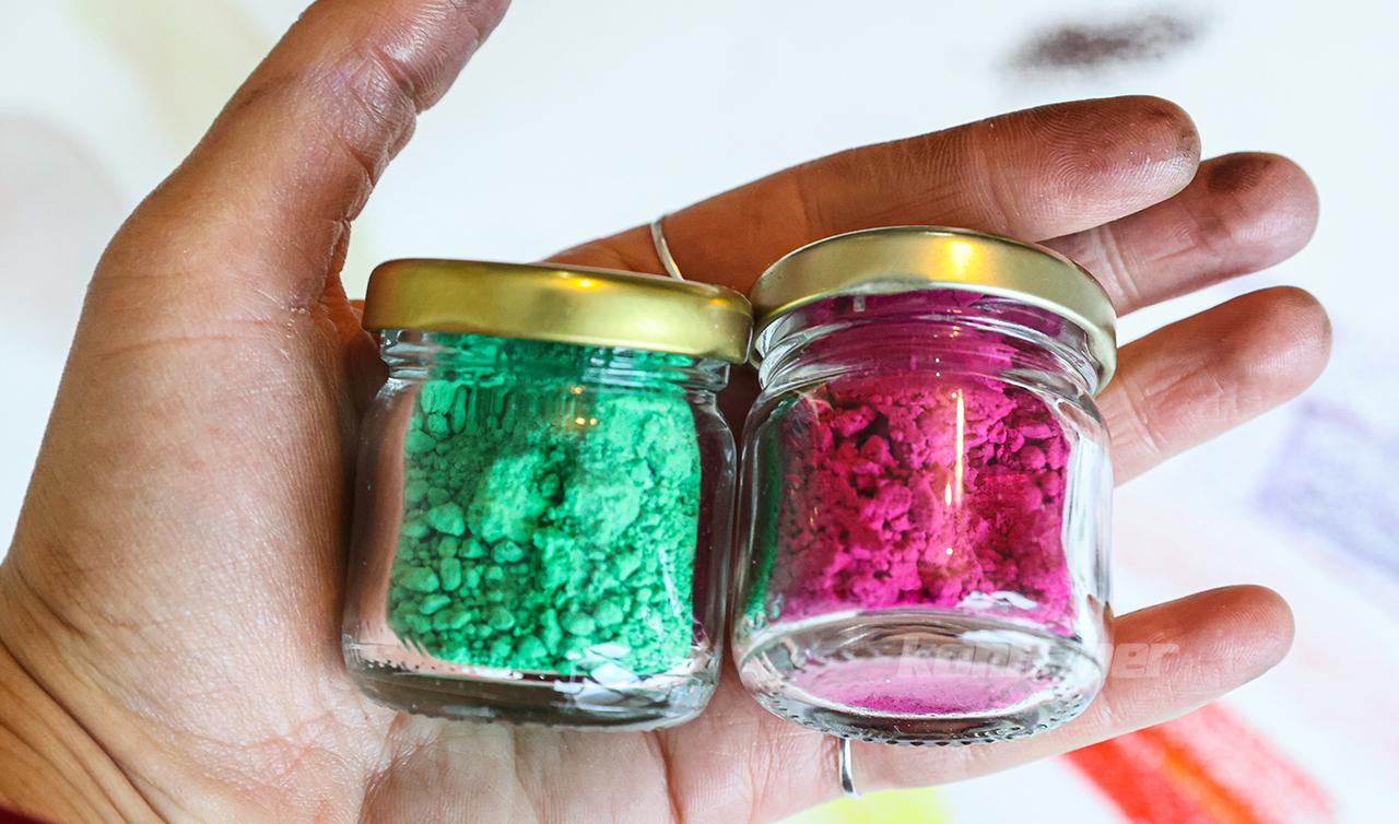 Kimyager Zilhicce Tanrıseven, balmumu ve doğal taşlar gibi çevre dostu materyallerle ürettiği toz, pastel ve sulu boyaları resim ve sanatla ilgilenen her yaştan bireyin kullanımına sunuyor.