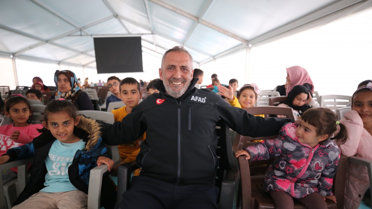 Depremin merkez üssü Kahramanmaraş'a gelen sanatçı Yavuz Bingöl de Vali Saim Çotur Stadı'nda kurulan çadır kentte oluşturulan etkinlik alanında gün boyu çocuklar ve yetişkinlere yönelik etkinlikler gerçekleştiriyor.