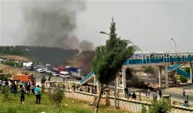 Şanlıurfa'nın Eyyübiye ilçesinde, çöp toplama merkezinden mahalleye yayılan kötü kokuya isyan eden vatandaşlar, lastik yakıp yolu çift yönlü trafiğe kapattı.