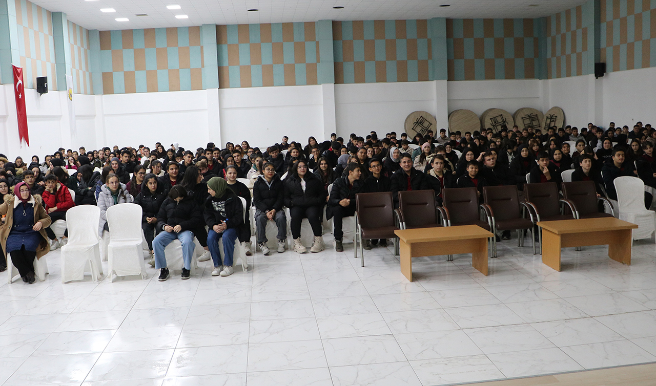 Sarayönü Konferans Salonu'nda düzenlenen etkinlikte, öğrencilere, siber güvenlik, sosyal medyanın olumsuz etkileri ve siber dolandırıcılık konularında bilgi verildi.