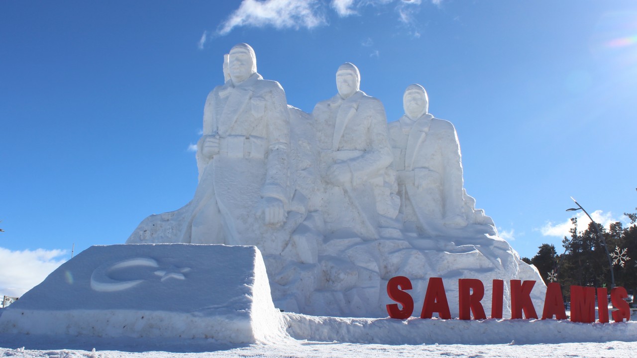 Kars'ın Sarıkamış ilçesinde Sarıkamış Harekatı'nın 109. yılı anma etkinlikleri kapsamında yapılan kardan şehit heykelleri, ziyaretçilerine duygusal anlar yaşatıyor.