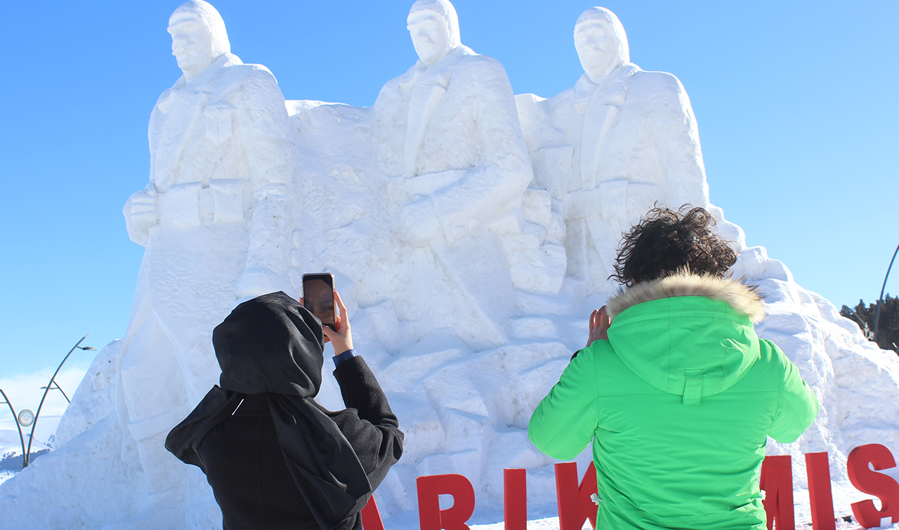 KAÜ ile Atatürk Üniversitesinden akademisyen ve öğrencilerden oluşan 9 kişilik ekip, Sarıkamış Kayak Merkezi'nin 1. Etap Oteller Bölgesi ile Kızılçubuk mevkisindeki kardan heykellerin yapımını tamamladı.Çalışma için civar bölge ve Handere'den 200 kamyonla kar taşındı.