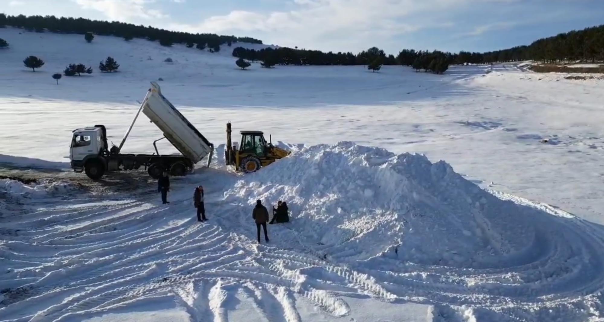 Sarıkamış Harekatı'nın 111'inci yılı anma etkinlikleri kapsamında, Allahuekber Dağları'nda donarak şehit olan askerlerin anısına yapılacak heykeller için ilçede iş makineleri ve kamyonlarla kar toplanıyor.