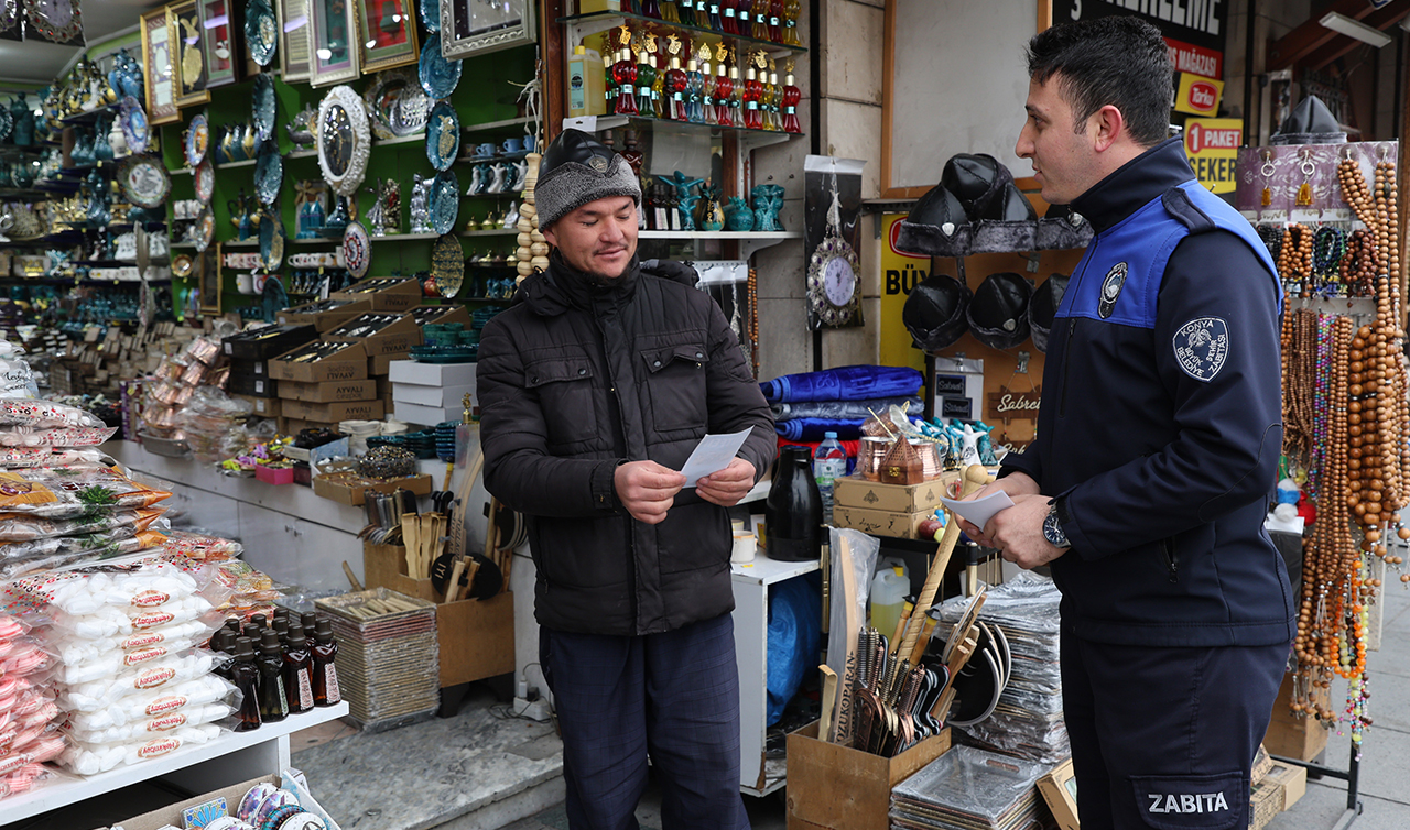 Büyükşehir Belediyesi Zabıta ekipleri, törenler kapsamında şehirde oluşabilecek olumsuzlukların önüne geçmek amacıyla özellikle merkezdeki kalabalık bölgeler, Mevlana Türbesi çevresi ve turistik alanlarda denetimler yaparak esnafları ve vatandaşları dilencilere karşı broşürlerle bilgilendiriyor.