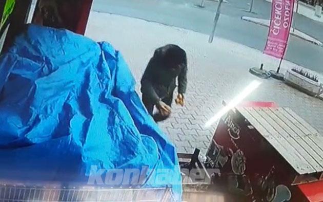 Hırsızlık olayları, merkez Selçuklu ilçesi Büyük İhsaniye Mahallesi’nde bulunan iki markette yaşandı. Edinilen bilgiye göre, marketin önüne gelen ve kimliği henüz belirlenemeyen şüpheli, marketin manav tezgahından kilolarca meyve ve sebze çaldı.