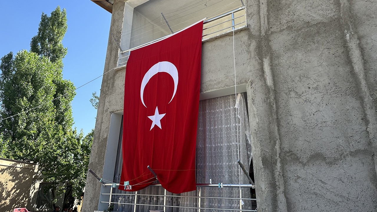 Pençe-Kilit Harekatı bölgesinde dün helikopter palinin çarpması sonucu şehit olan Piyade Uzman Çavuş Enes Kırmızıkoç'un Van'ın Erciş ilçesinde ailesinin yaşadığı eve Türk Bayrağı asıldı.