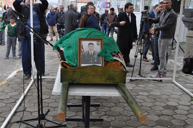 Çok sayıda vatandaş, ellerinde Türk bayraklarıyla mezarlığa geldi. Fadimana Halisdemir'in cenazesinin taşındığı salda şehit Ömer Halisdemir'in fotoğrafı taşındı.