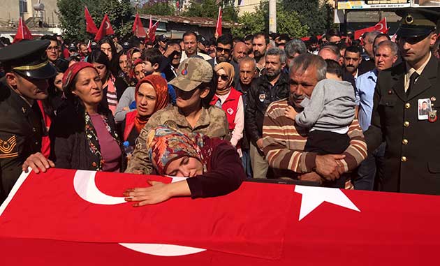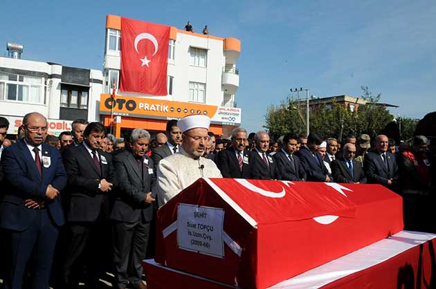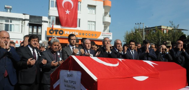 Barış Pınarı Harekatı bölgesinde tespit edilen el yapımı patlayıcıya müdahale sırasında şehit düşen İstihkam Uzman Çavuş Suat Topçu, memleketi Osmaniye'nin Kadirli ilçesinde son yolculuğuna uğurlandı.