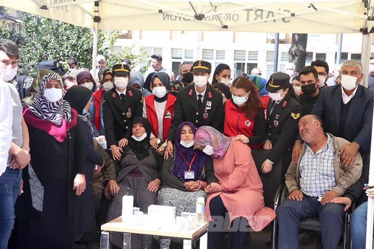 Şehidin Türk bayrağına sarılı cenazesi, Turhal Belediyesi önünde hazırlanan alana taşındı. Burada babası Hüseyin, annesi Fatma, eşi Özlem Yiğit şehidin tabutuna sarılarak gözyaşı döktü. Şehidin 7 aylık oğlu Melih ise babasının tabutuna son kez dokundu.