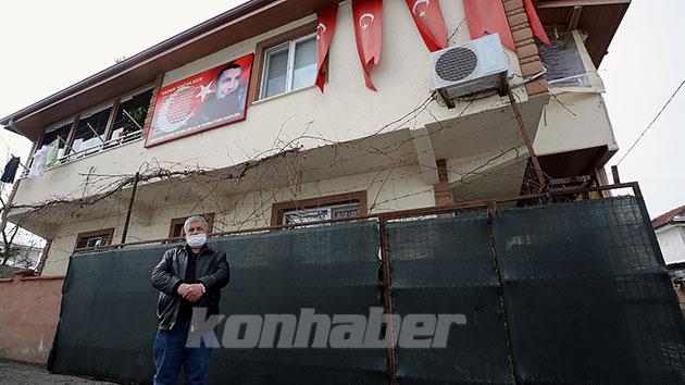 Türk bayrakları, oğlunun fotoğrafları ve eşyalarıyla şehit arkadaşlarının fotoğraflarını burada sergileyen Aksarı, şehit babası olmanın gururunu yaşıyor.