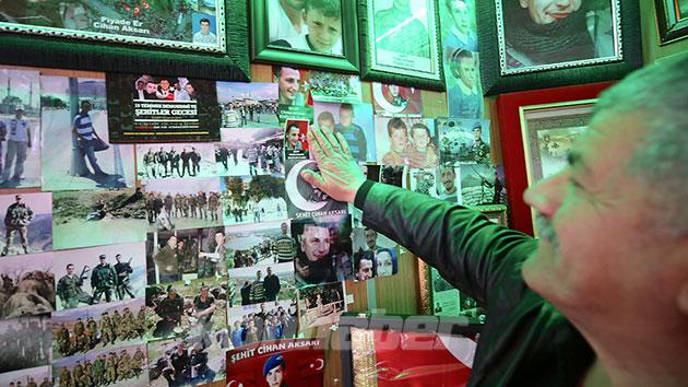 Hakkari'nin Dağlıca bölgesinde terör örgütü PKK mensuplarınca yola döşenen patlayıcının infilak ettirilmesi sonucu 15 silah arkadaşıyla şehit düşen sözleşmeli Piyade Er Cihan Aksarı'nın babası, oğlunun hatıralarını yaşatıyor.