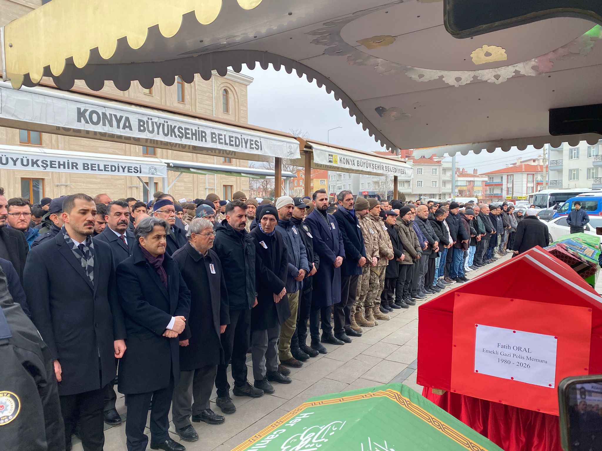 Fatih Oral'ın (46) Türk bayrağına sarılı cenazesi, silah arkadaşlarının omuzunda Selçuklu ilçesindeki Hocacihan Tatbikat Camisi'ne getirildi. Oral'ın naaşı, öğle namazı sonrası kılınan cenaze namazının ardından Hocacihan Mezarlığı'nda toprağa verildi.